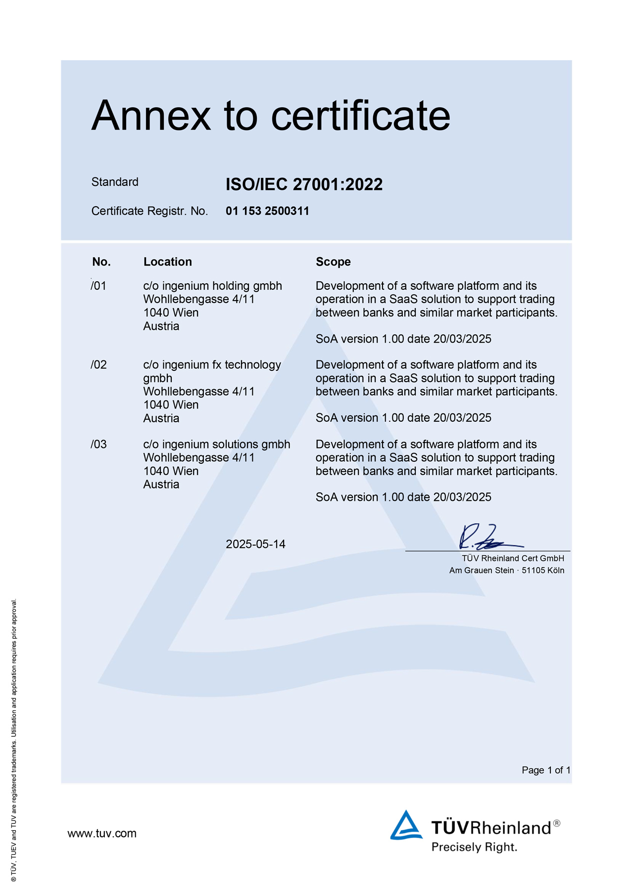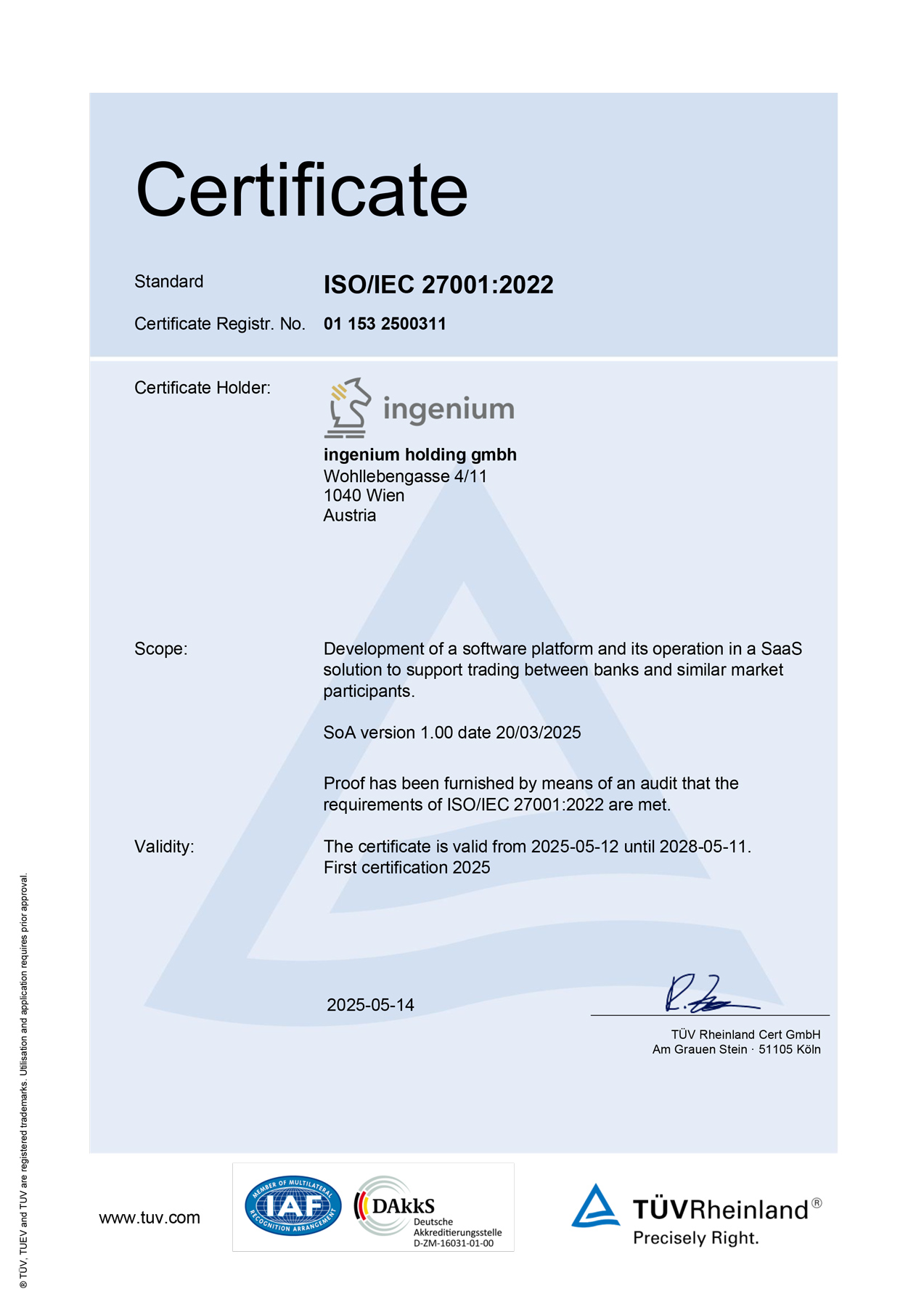 This certification confirms that we have implemented a comprehensive and continuously improving management system designed to safeguard sensitive data in alignment with applicable legal and regulatory requirements.